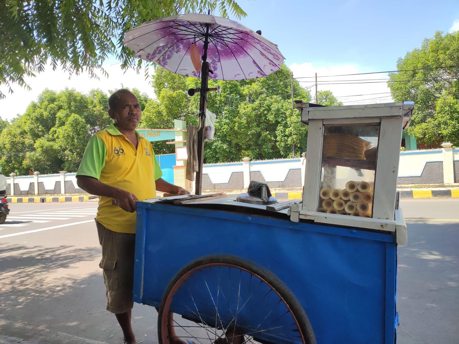 Hendrikus Fendi sehari-hari berkeliling Kota Maumere dengan mendorong gerobak berwarna putih biru.