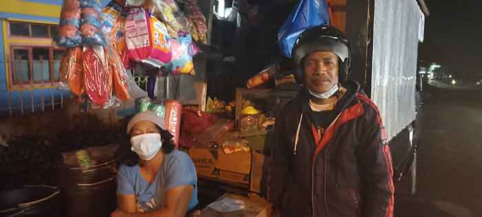 Pasutri ini menjajakan barang dagangan mereka di depan rumah sakit umum daerah (RSUD) dr. Ben Mboi Ruteng di Kecamatan Langke Rembong, Kabupaten Manggarai.
