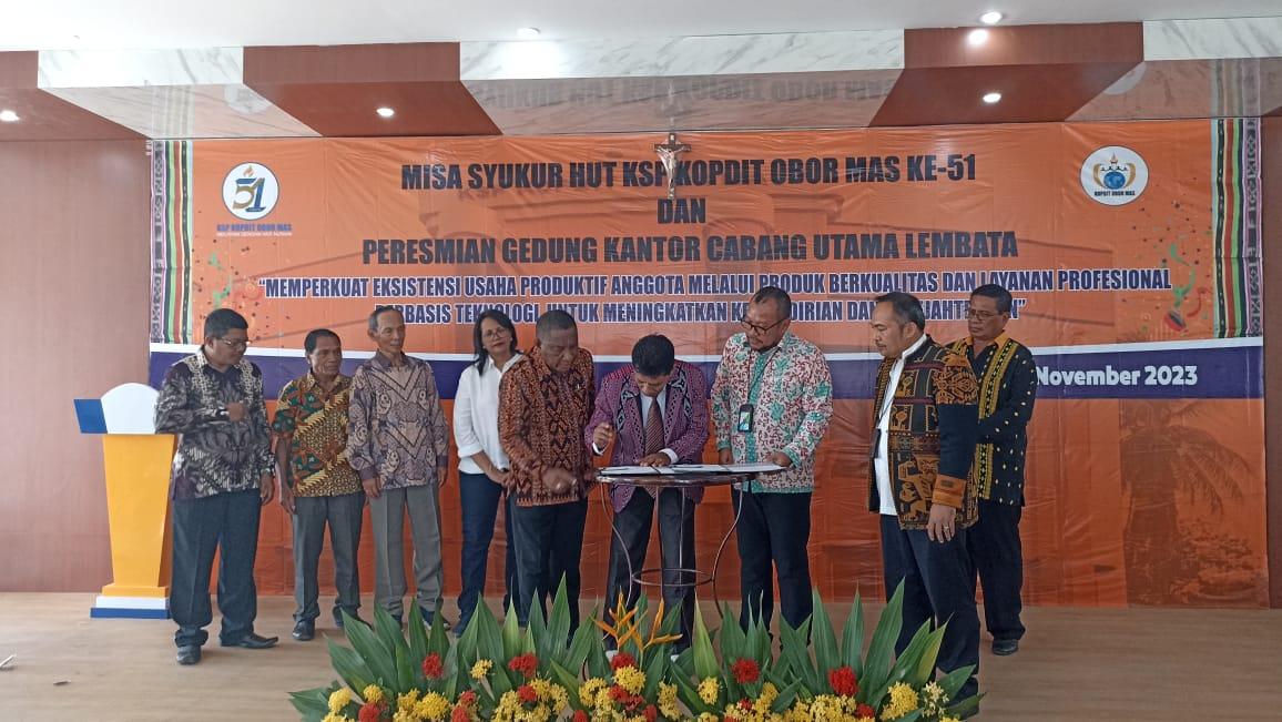 TRIBUNFLORES.COM, LEWOLEBA-Kopdit Obor Mas dan BPJS Ketenagakerjaan melakukan penandatanganan nota kesepahaman (MoU) di acara puncak Hari Ulang Tahun Ke-51 Kopdit Obor Mas yang diselenggarakan di Aula Kantor Kopdit Obor Mas, Jalan Trans Lembata, Kota Lewoleba, Jumat, 17 Nopember 2023.