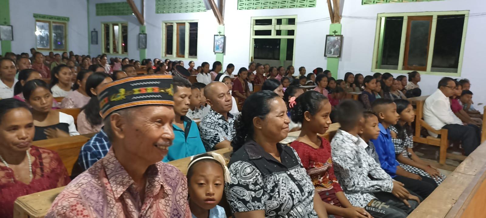 TRIBUNFLORES.COM, BORONG----Umat Katolik membludak saat misa Malam Natal 24 Desember 2023 di Kapela St Petrus dan Paulus Longko, Desa Bangka Kantar, Kecamatan Borong, Kabupaten Manggarai Timur.