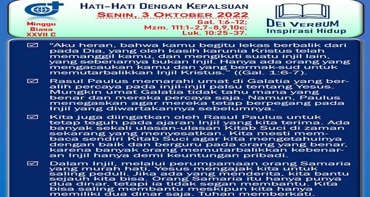 Bacaan Injil Katolik Senin 3 Oktober 2022