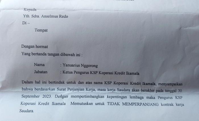 Memperjuangkan hak-haknya dipecat oleh manajemen KSP Kopdit Ikamaka,mantan karyawan mengadu ke Dinas Tenaga Kerja dan Transmigrasi Flores Timur.