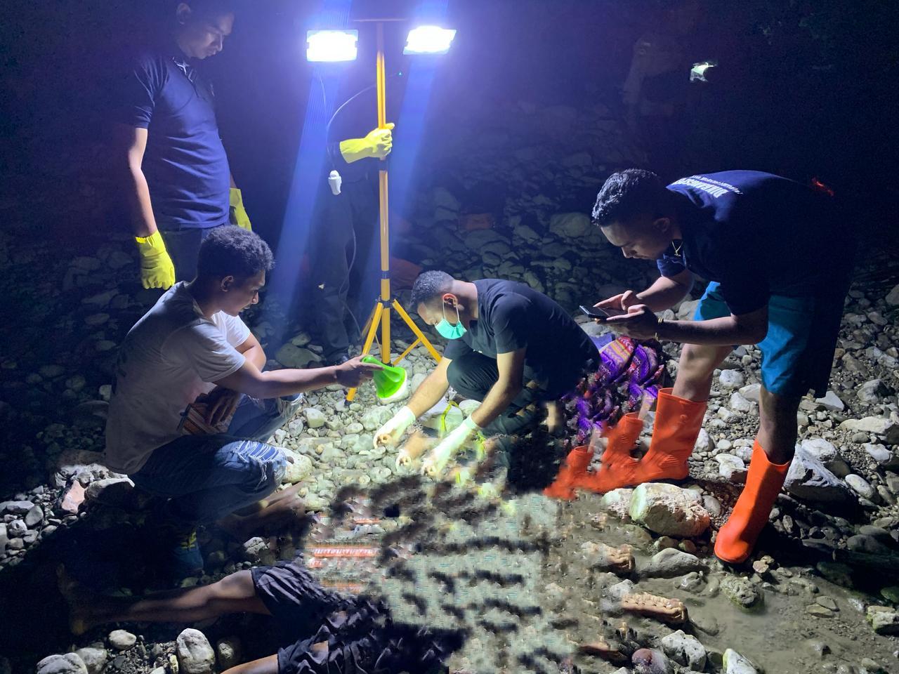 Saat sedang mencari udang, LB mengajak pelaku dan kedua anaknya untuk mencari udang ke arah atas di tempat yang bernama Poli.