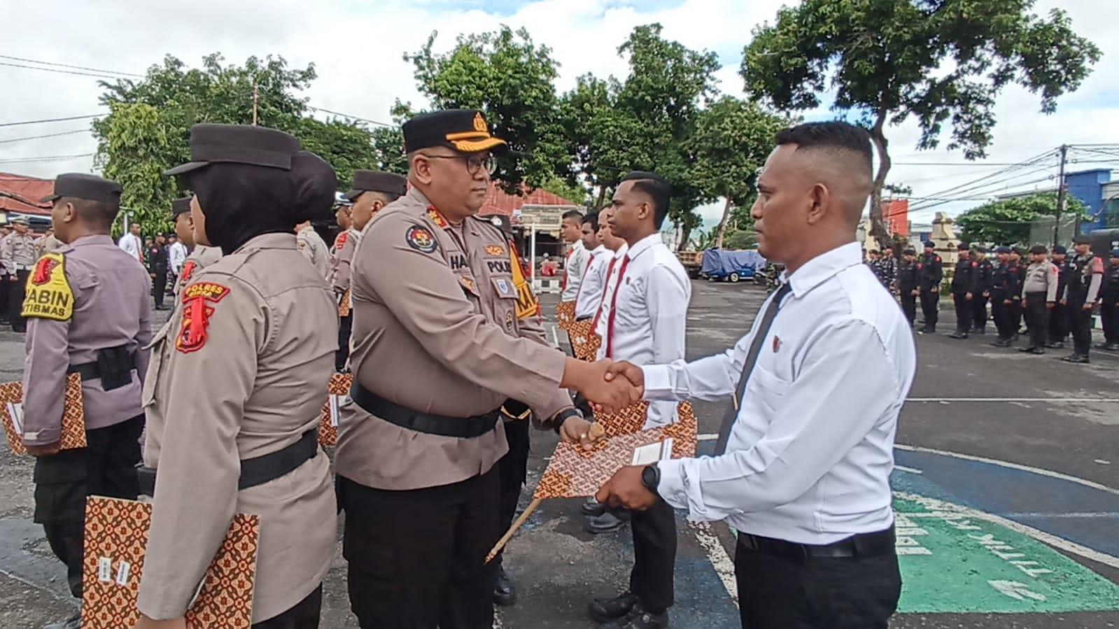 Kepala Kepolisian Resor Sikka, AKBP Hardi Dinata memberikan penghargaan kepada 16 personel Polres Sikka, Rabu 3 April 2024