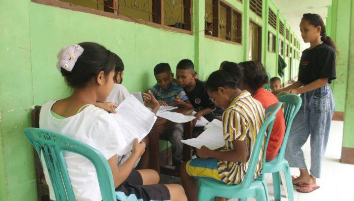 Tinggal di Pos pengungsian Gunung Lewotobi laki-Laki tidak lagi menyenangkan bagi para murid SD yang kesulitan belajar.