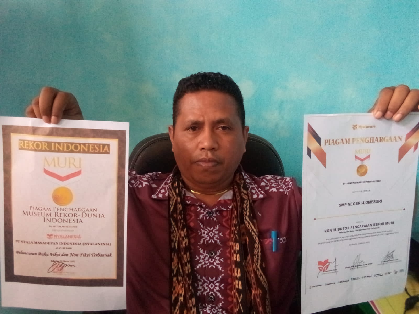 SMPN 4 Omesuri di Kabupaten Lembata meraih rekor Muri sebagai kontributor peluncuran buku fiksi dan non fiksi terbanyak program literasi.
