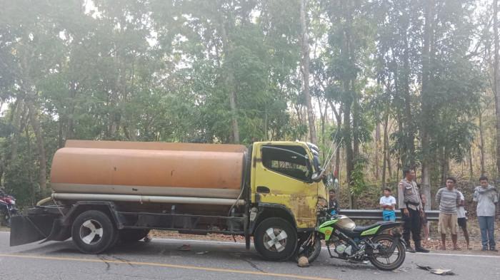 TRIBUNFLORES.COM, KEFAMENANU - Kapolres Timor Tengah Utara (TTU), AKBP Eliana Papote melalui Kasubsi PIDM Humas Polres TTU, IPDA Markus Wilco Mitang menjelaskan, pengendara sepeda motor Yamaha Vixion warna hitam dengan nomor polisi DH 4082 KZ bernama Dionisius Tael (28) mengalami patah tulang pada tangan kiri usai terlibat insiden tabrak depan dengan mobil tangki air warna kuning nomor polisi DH 9106 DG.